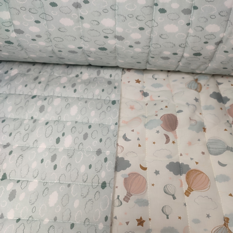 Tela Acolchada Globos y Nubes Reversible